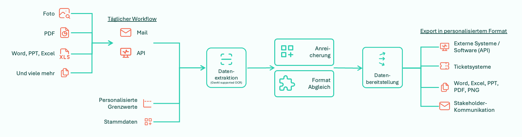 KI ist mehr als nur ein Chatbot, der die Kommunikation mit dem Tool erleichtert – sie ist unser unverzichtbarer Motor, der Ihre täglichen und zeitintensiven Prozesse revolutioniert. Unsere Technologie optimiert die Verarbeitung von zeitkritischen, komplexen und datenintensiven Aufgaben: